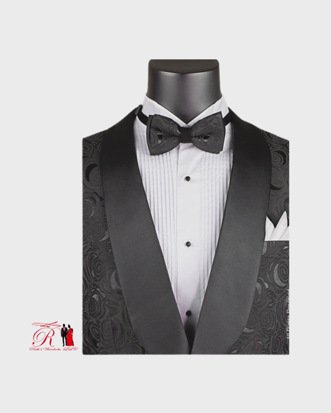Vinci Single Breasted Regular Fit Jacquard Fabric 1-Button Sport Coat With Matching Bow Tie (Coat Only) Collection